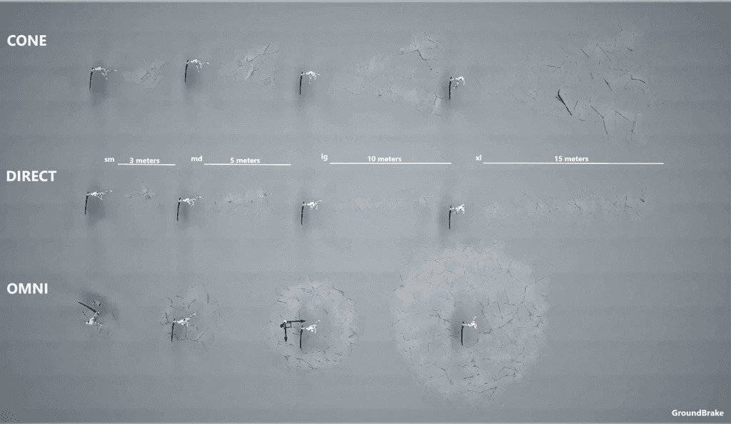 Ground Fractures: Complex fracture simulations with dynamic cracks and displacement rendered as 64-frame sequences, converted to ARCSM-compatible heightmaps Sand Simulations: Particle-based sand displacement converted to mesh via VDB, maintaining fine surface detail through ARCSM's anisotropic sampling Sinkholes: Large-scale terrain deformation effects with smooth depth transitions and preserved silhouette integrity Technical Integration Size Variations: sm (3m) / md (5m) / lg (10m) / xl (15m) Directional Coverage: Cone angles at 30°, 45°, 90°, 180°, 270° for both directional and omnidirectional simulations